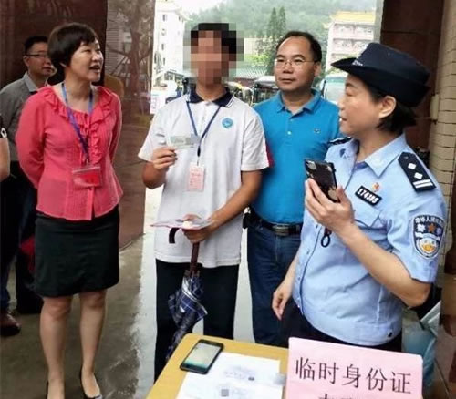 快猫 公安局在考点恩平一中设置高考安保现场服务点,治安、交警、巡警、消防等部门进驻。今天上午,市公安局快速反应,在考点现场及时为一名身份证过期和一名丢失身份证的考生办理临时身份证,并冒雨按时送到考生手中,让两名考生顺利参加高考。
