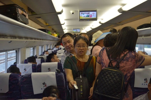 横陂中学79届校友到达湛江西站并与”和谐号“合影