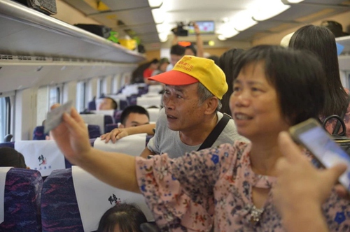 台山市民黄小姐一行5人组织了“闺蜜团”从台山站上车来到了恩平站。她告诉记者,自己与好朋友们约好在铁路通车第一天坐车体验,“车厢环境很好,乘务人员的服务很周到,我们都感觉十分满意。”黄小姐告诉记者,以往从台山去粤西游玩只能通过大巴,但花费的时间相对较长。现在多了一个更为舒适快捷的出游方式,以后都会选择乘坐江湛铁路。”