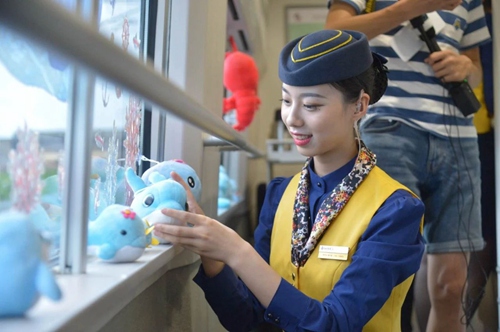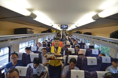 车厢内环境舒适,而且还有漂亮的乘务员,真是车外车内都是亮丽的风景