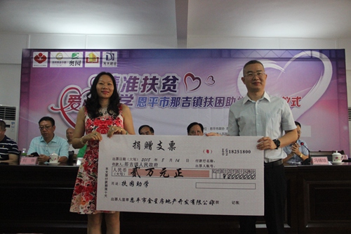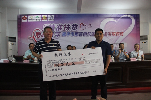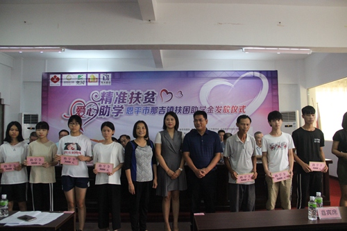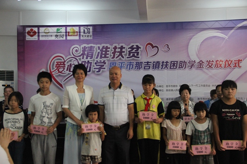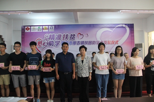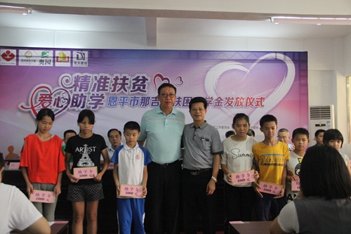 8月14日上午,由快猫 政协、市关心下一代工作委员会、市老干部局主办主办,那吉镇人民政府协办的扶困助学金发放仪式在那吉镇政府举行。江门市关工委主任王曙星,江门市关工委常务副主任梁美贤,江门市关工委副主任兼办公室主任莫惠芳,恩平政协主席禤缵灵,那吉镇委书记黎晓辉,快猫 委组织部副部长、老干部局局长冯万钿,那吉镇镇长吴悦峰,快猫 关工委常务副主任伍惠球,快猫 教育局主任科员梁芬芳,那吉镇副镇长刘仕杰,恩平泉林奥园代表伍向阳、快猫 兴城房地产开发有限公司董事长霍建峰,广东永锐实业有限公司董事吴淑婷,快猫 第一建筑工程有限公司总经理徐福浓,快猫 金星房地产开发有限公司董事梁素玲等领导嘉宾及91名贫困学生、家长出席了本次活动。