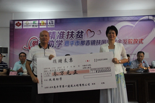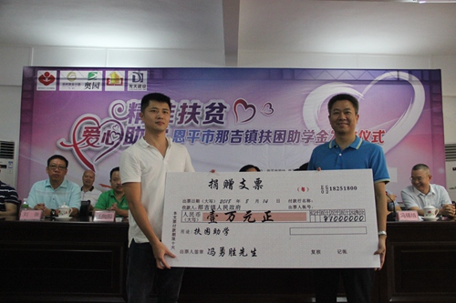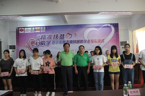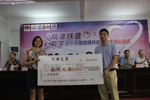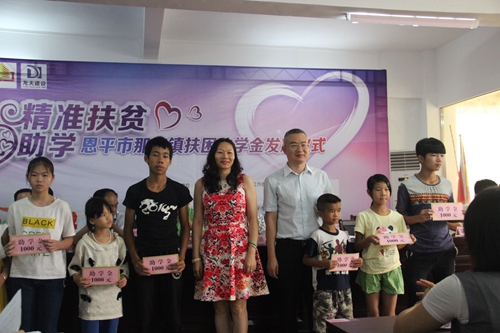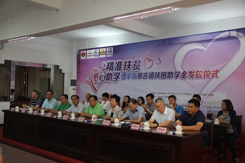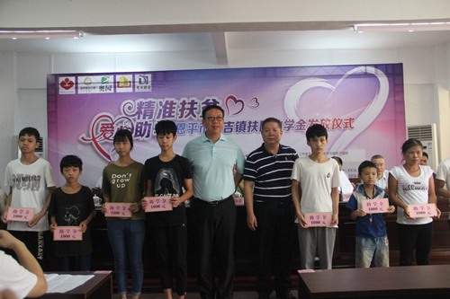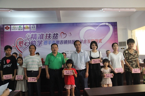 出席活动的领导嘉宾分批为学生发放助学金。本次受资助学生一共有91人,其中今年考上本科的20名新大学生,每人获得5000元助学金;11名在校的中专生及高中生,每人获3000元助学金;其他60名在校初中及小学学生,每人获得1000元助学金。