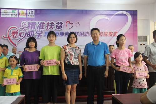 那吉镇委书记黎晓辉为活动致辞。黎晓辉表示,今天的助学金发放,将更大地鼓舞那吉镇全面贯彻党的教育方针,以更强的责任感和更大的工作力度,让那吉镇发展的成果惠及群众,为全市的教育事业发展贡献我们的力量。同时,他衷心希望受助的同学们倍加珍惜这来之不易的求学机会,坚定理想信念,树立远大抱负,把党和政府的真切关怀、社会各界的真心关爱,转化为奋发图强、回报社会的强大动力,刻苦学习,争取更好的成绩。爱心企业家代表,快猫 第一建筑工程有限公司总经理徐福浓在会上致辞,他希望更多的爱心企业、爱心人士关心贫困学生。