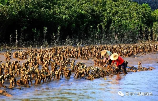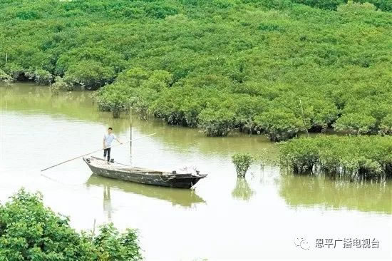 镇海湾恩平港是全省9个直出试点港之一,其滩涂非常适宜红树林生长。恩平的红树林颇具代表性:一来因为面积不小;二来红树种类多,有白骨 壤、秋茄、桐花树、木榄、海漆、黄槿、海芒果等10多个;三来是树大,平均树高3.5米,最高达6米,有的茎粗达12-14厘米,郁闭度0.7以上。