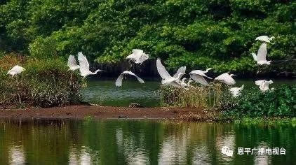 每天早晚,你可以看见大群的白鹤、黑鹤、白鹭、池鹭等多种鸟类在这里起起落落。这片五邑现存面积最大的红树林,成了东半球候鸟迁徙途中最重要的栖息地之一。