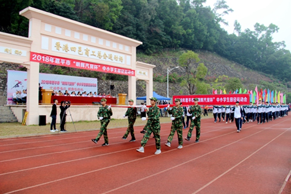 “明辉汽贸杯”中小学生田径运动会在恩平一中香港四邑商工总会运动场隆重开幕。市委常委吴永芳,副市长江伟,市教育局局长莫平福,各中、小学校长,以及来自全市各中小学42支代表队伍,领队、裁判员、运动员等500多人参加了开幕式。