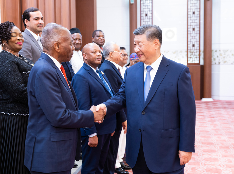 8月20日下午,国家主席习近平在北京人民大会堂集体会见出席全国人大加入各国议会联盟40周年纪念活动暨第六次发展中国家议员研讨班外方议会领导人。新华社记者 刘卫兵 摄
