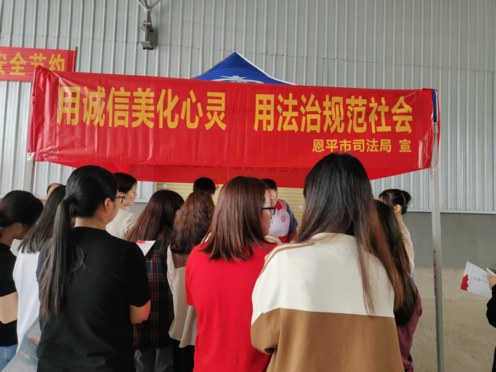 活动现场 活动中,志愿者向前来参与活动的企业职工进行法治与诚信的普法宣传,结合合同履约等实务经验,精准、全面阐释了企业在实际经营活动中因虚假报件等不诚信行为带来的不良后果做了详细分析,深刻剖析了不诚信、虚假报件行为应承担的法律责任。