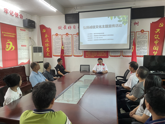 为进一步培育和践行社会主义核心价值观,弘扬诚实守信文明新风,营造良好社会氛围,7月3日,快猫 农业农村局到君堂镇东北雁村开展弘扬诚信文化主题宣传活动,吸引周边村民积极参与。 本次宣传活动通过讲述身边诚实守信事例,并结合电信诈骗、贷款担保等案例讲解失信带来的严重后果,倡导大家讲文明,守诚信,大力普及诚信知识,为群众答疑解惑。