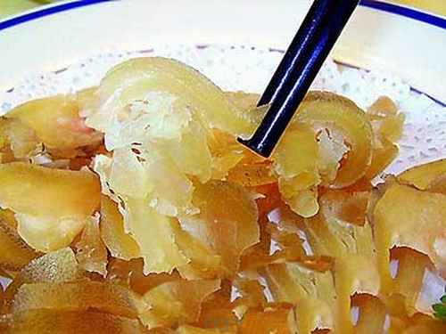 如果嫌传统焖制的做法,菜肴味道太浓,可以试试这里有名的下酒小菜———牛脚皮。通常,师傅称此为“下栏菜”(行话,指不上档次的原材料),试想一下,牛脚皮其实就是牛脚跟上的肉茧,因为长年累月的漫走而形成,每每需要经过洗刷和清焖,吃起来爽口弹牙,依然带有一点淡淡的牛肉香味,其本身并没有味道,靠的是芝麻酱、花生酱等“混酱”来调味。据经常去恩平游玩的食客说,这道小菜在恩平夜市的大排档上相当畅销。