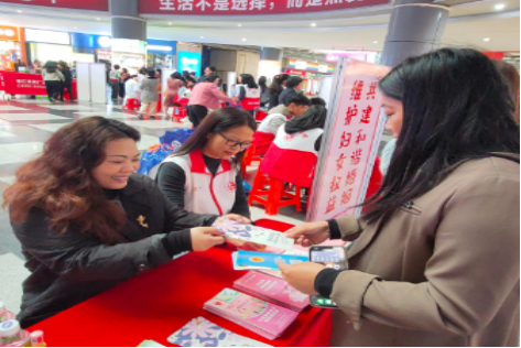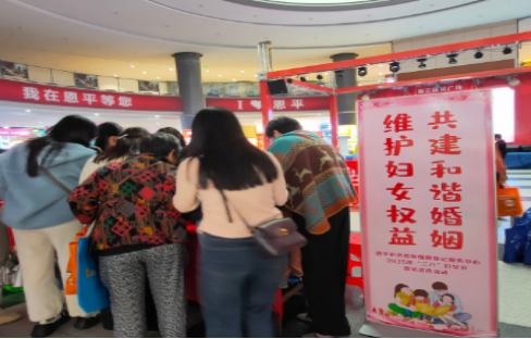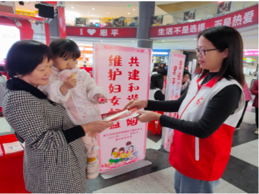 民政局在锦江国际广场开展了一场主题为“维护妇女权益,共建和谐婚姻”的普法宣传活动。