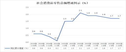 三、商业。1—10月,全市社会消费品零售总额82.25亿元,同比增长1.7%。