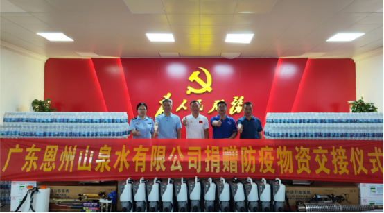 防疫不是独角戏,而是全民同心的攻坚战。除了家家户户主动参与环境整治,辖区企业也积极践行社会责任,为疫情防控注入温暖力量。10月5日上午,大田镇政府一楼暖意融融,一场防疫物资交接仪式在此举行——广东恩州山泉水有限公司怀着对坚守防疫一线工作人员的深切关怀,捐赠防疫资金2.5万元、碧水天露湖山泉水252箱、喷雾机和热烟雾机16台等,为持续奋战在“三清三拆”现场、蚊媒消杀一线的镇村干部、志愿者送去清凉慰藉。