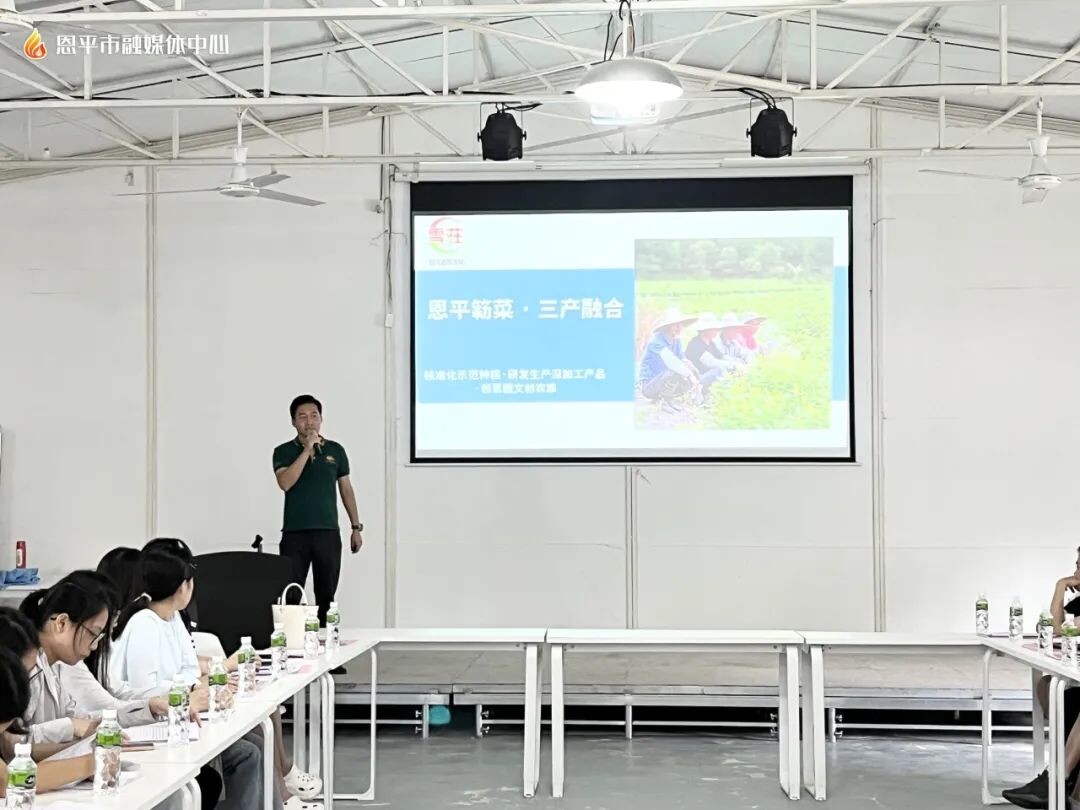 毕业生一行来到全国农村创业园区(基地)——快猫 簕菜文化创意园。簕菜文化创意园的负责人李劲新,是一名“80后”新型农民,也是“恩才回归”就业的代表,他从如何打造农业发展新模式、建立特色农业品牌思路等方面分享了自己的创业之路,让毕业生们直观了解到创意园的建设情况和产业发展历程,感受到农业创新的强大魅力。针对大学生程玉婷提出的创业方面的问题,李劲新结合自身经历,从赛道选择、团队组建、引流宣传等方面提出了具体的建议和指导。李劲新也鼓励大学生挖掘家乡特色,通过创新创业带动家乡发展。