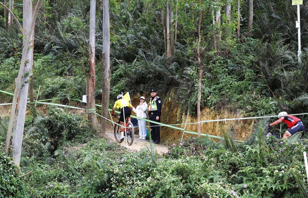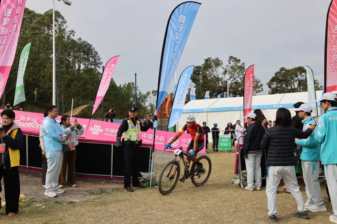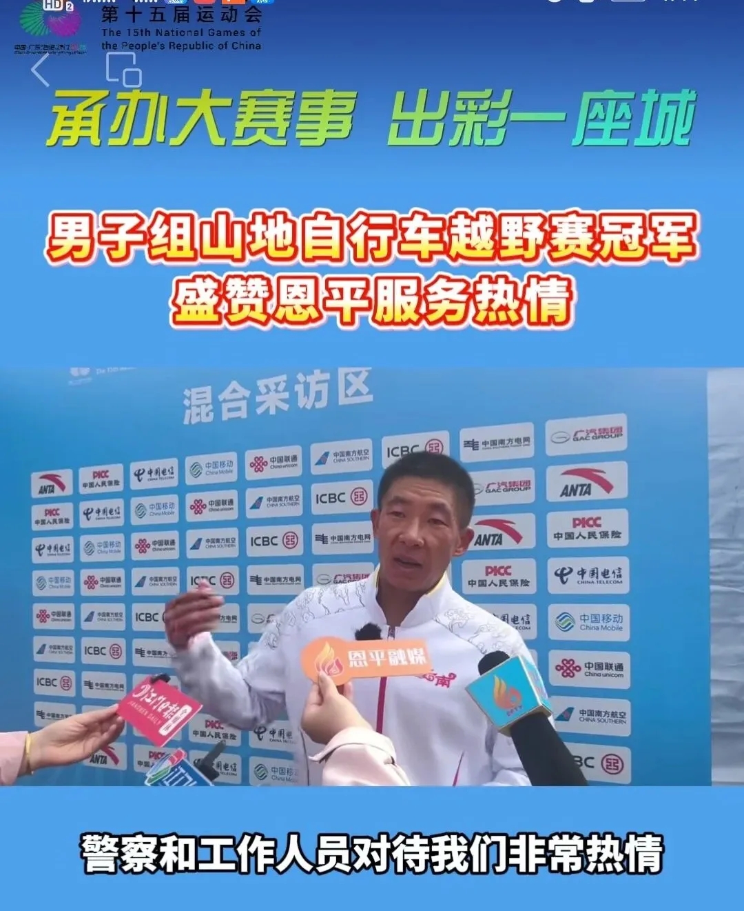 山地自行车男子越野赛冠军吕先景为恩平公安点赞。
