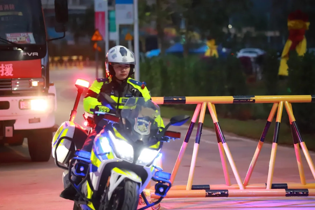当赛事落幕,选手们带着荣光离开赛场,恩平公安的民辅警仍坚守岗位,进行最后的收尾工作,确保每一位参赛人员的安全离开。