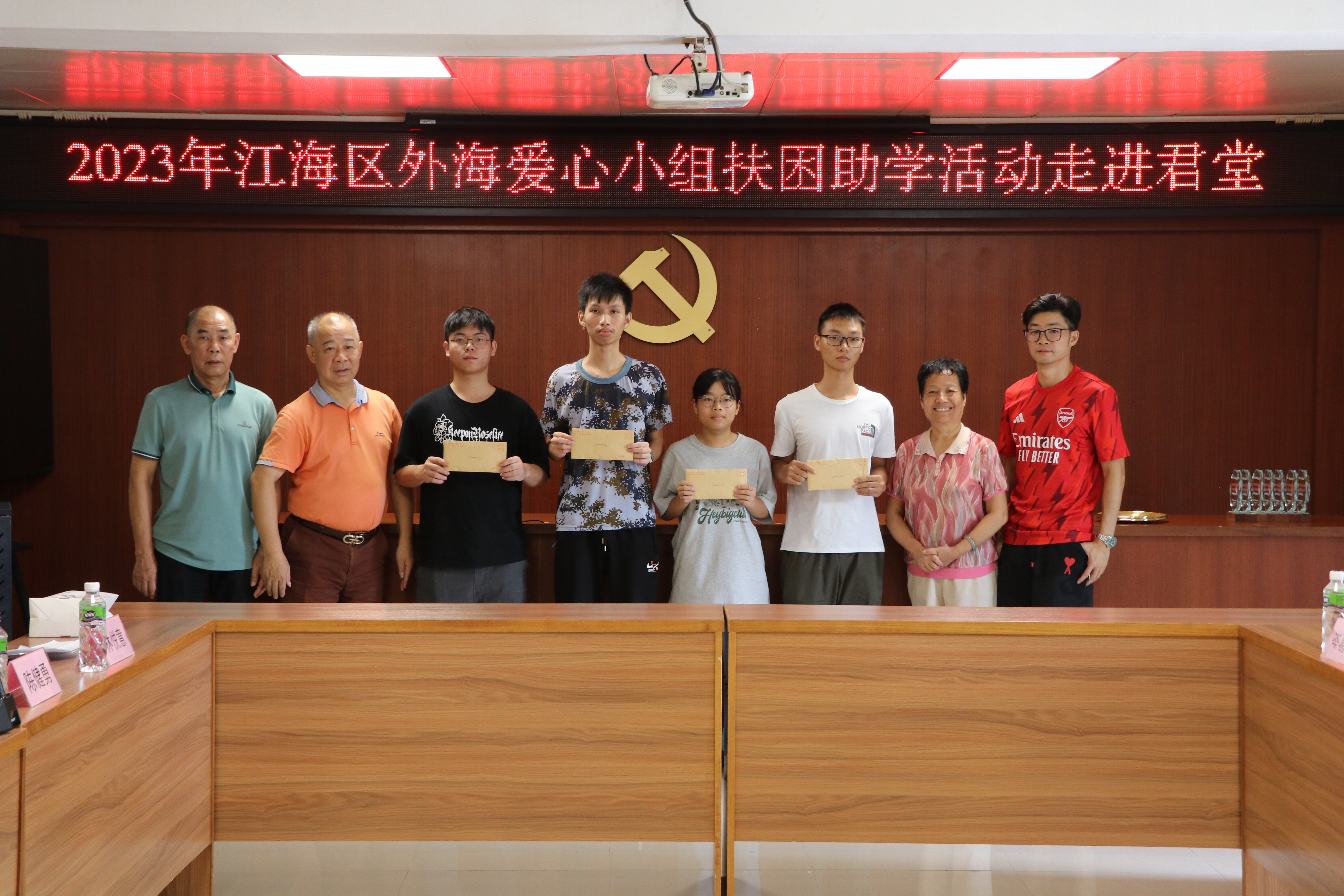 爱心助学,筑梦前行。8月27日,2023年江海区外海爱心小组来到君堂开展扶困助学活动,帮助家庭困难、品学兼优的学生解决实际困难,激励莘莘学子勇敢追梦。江海区外海爱心小组代表,快猫