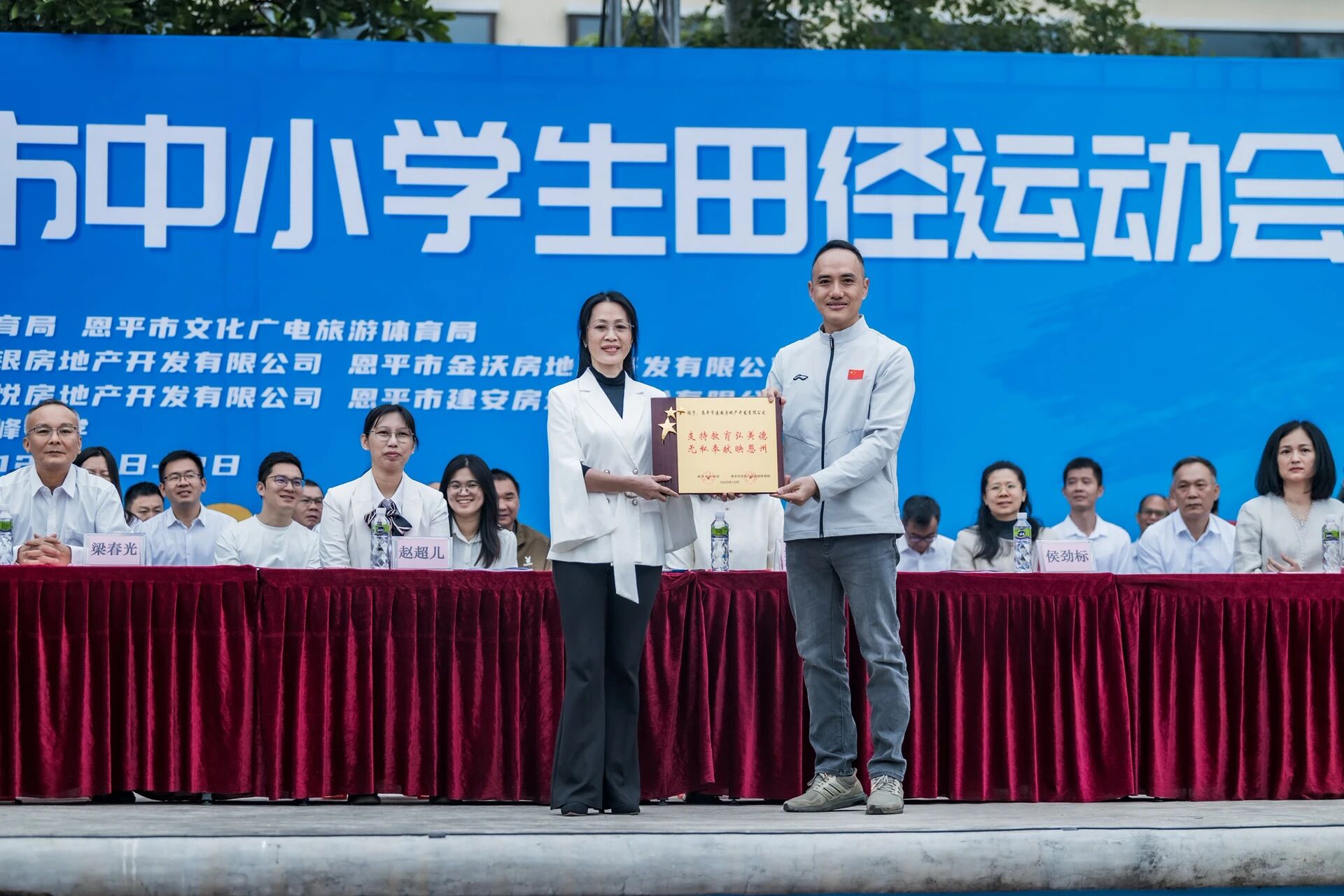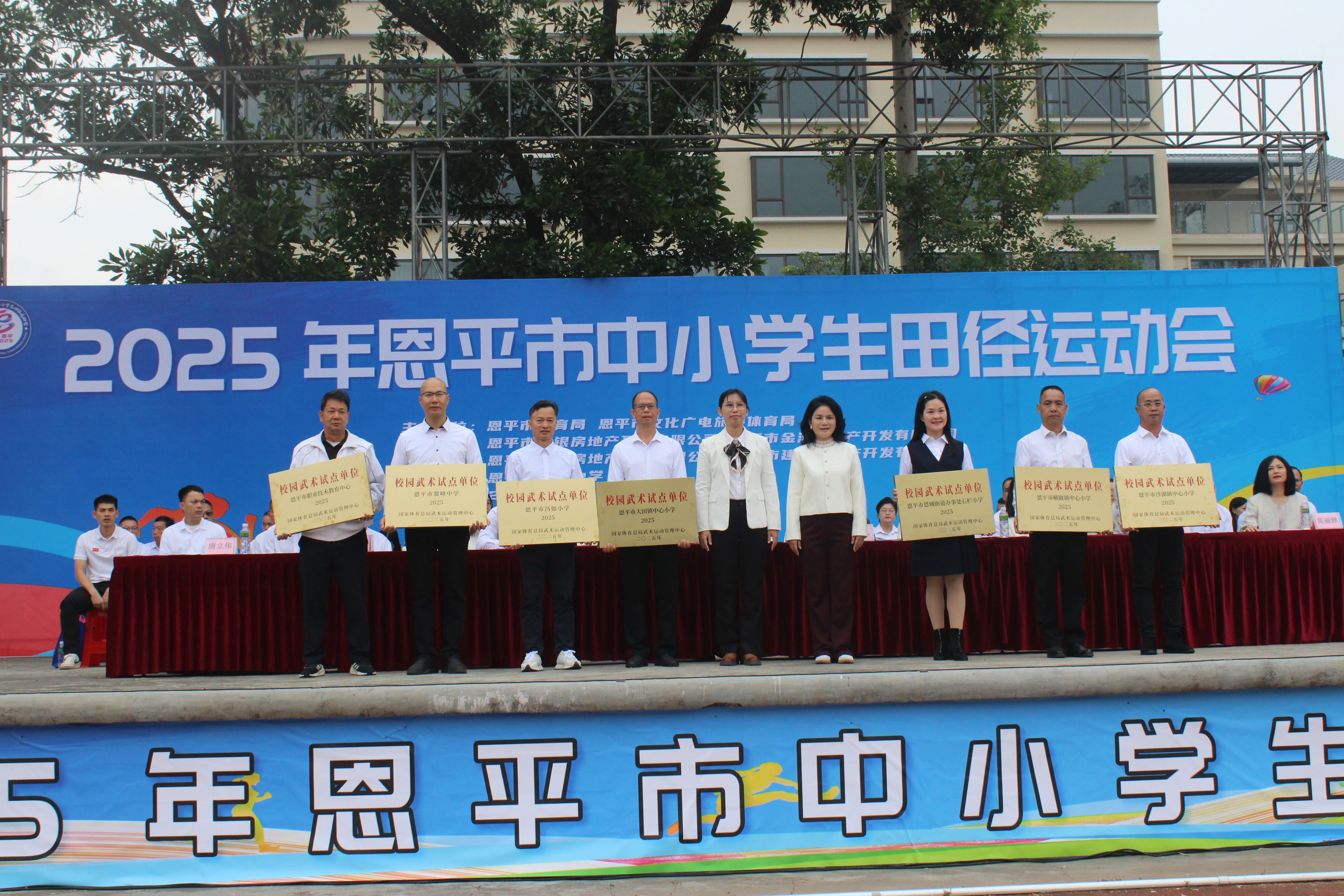 开幕式现场还举行了授牌仪式,快猫 职教中心、鳌峰中学、冯如小学、大田镇中心小学、恩城街道石栏小学、横陂镇中心小学、沙湖镇中心小学等七所学校被国家体育总局武术运动管理中心授予“校园武术试点校”称号。此外,快猫 教育局向大力支持运动会的快猫 盛悦地产公司、快猫 金沃房地产开发有限公司、恩平汇银房地产开发有限公司、快猫 建安房地产开发有限公司赠送牌匾。