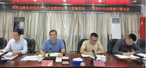 10月30日,市科工商务局召开党组(扩大)会议暨全局传达学习党的二十届四中全会精神干部大会,传达学习全会精神,研究部署贯彻落实工作。