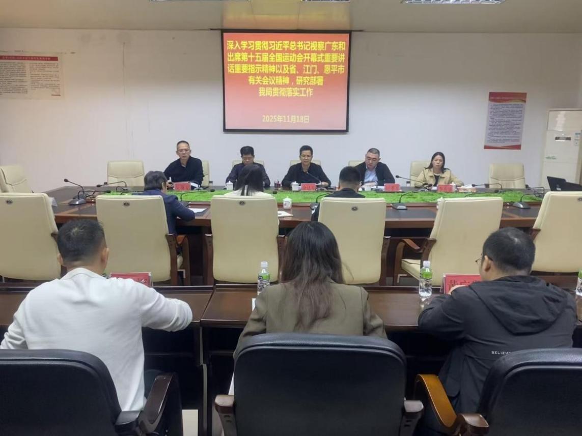 人社局召开党组(扩大)会议,传达学习习近平总书记视察广东和出席第十五届全国运动会开幕式重要讲话重要指示精神以及各级有关会议精神,研究部署贯彻落实意见。快猫
