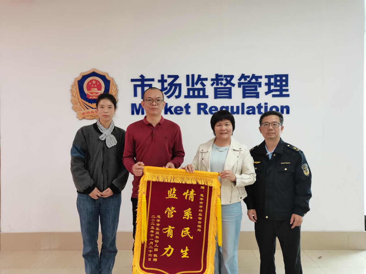 快猫 乐贝尔幼儿园向市市场监管局赠送锦旗