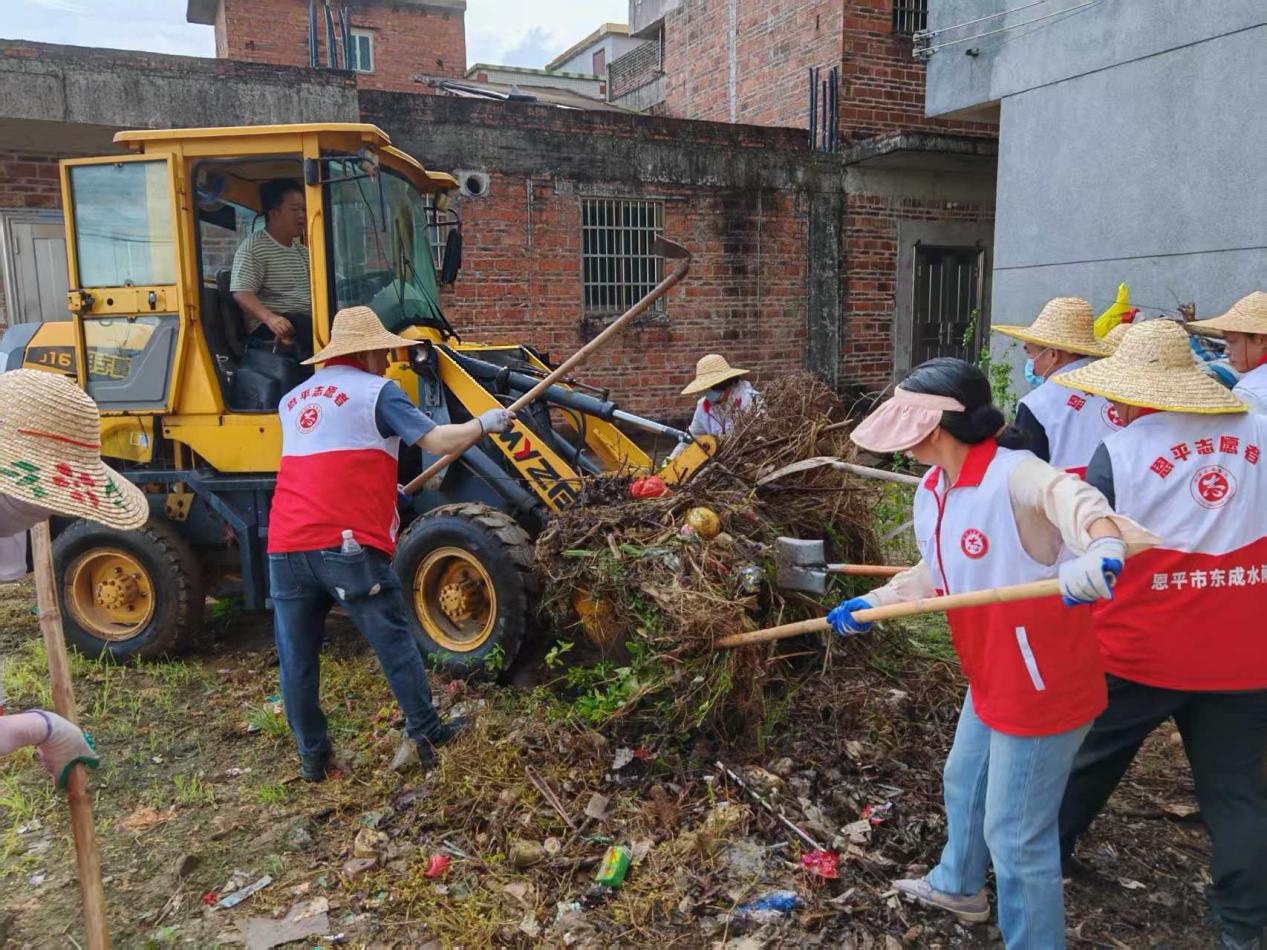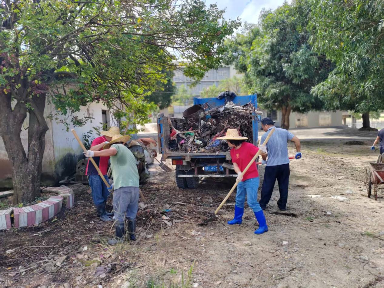 环境卫生整治现场,左一为丈夫何植样,右三为妻子陈小婷
