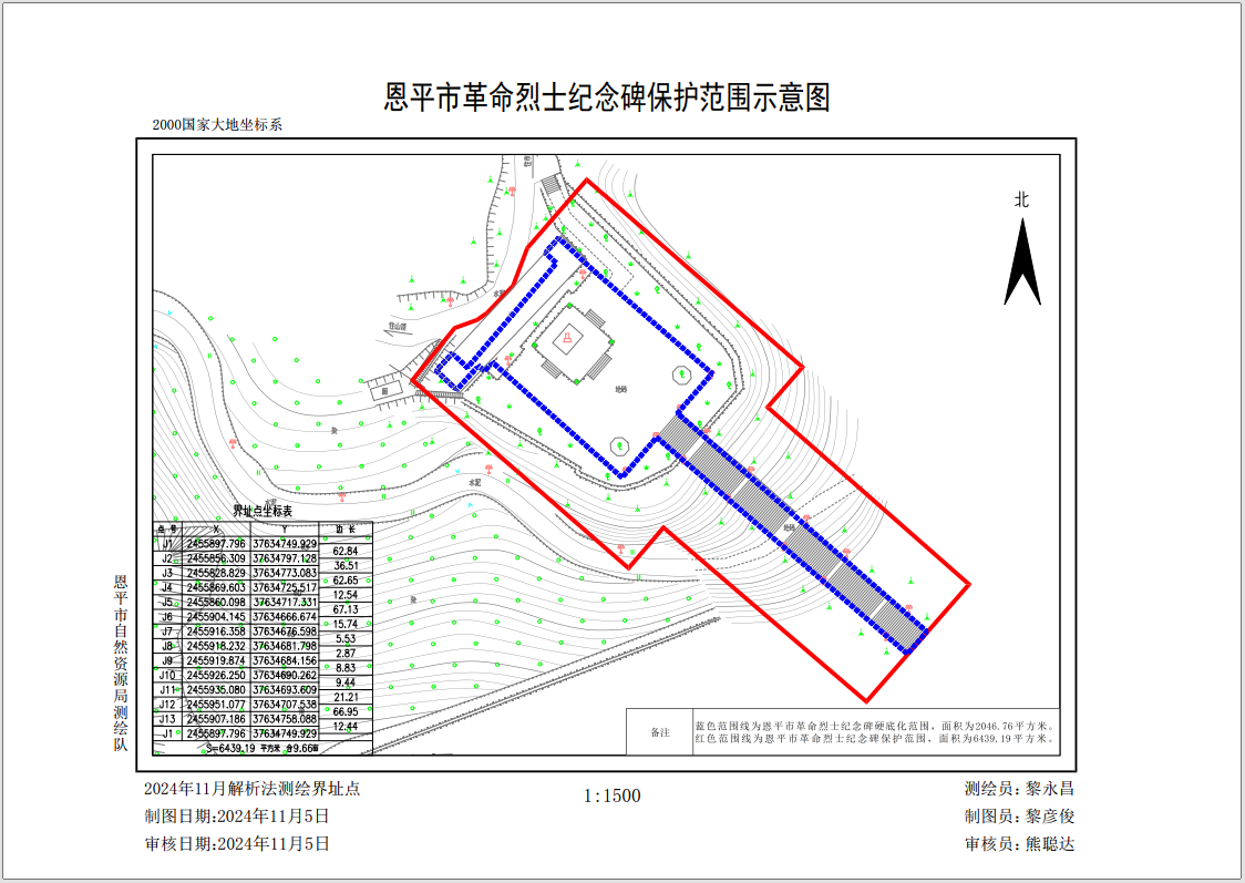 革命烈士纪念碑边界线(硬底化范围),红色范围线为快猫