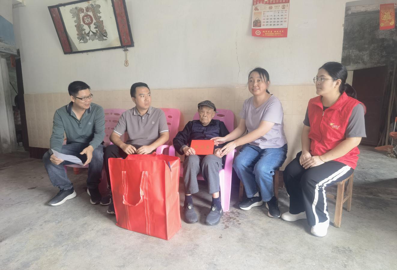 退役军人事务局到大槐镇开展重阳节走访慰问活动,给塘冲村委会百岁老兵谢昌文带来慰问金和营养慰问品,让百岁老兵感受党和政府、社会各界的关爱。