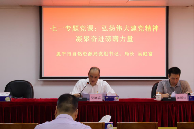 7月28日,市自然资源局开展七一专题党课活动,局党组书记、局长吴庭富为党员干部职工讲授主题为“弘扬伟大建党精神 凝聚奋进磅礴力量”的党课。