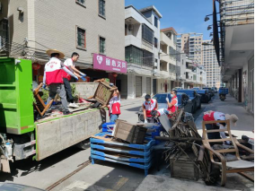 防控期间,超强台风“桦加沙”也来帮倒忙,消灭了一批蚊子,却留下了不少蚊子的孳生温床,还有多变的天气——时而烈日当空,高温炙烤;时而骤雨倾洒,地面湿滑,但这都没有阻挡同志们坚定的脚步。在高温下,他们汗流浃背,衣衫湿了又干、干了又湿;在雨水中,他们踩着湿滑的地面,冒雨穿行。手中的锄头、铁铲、扫把和垃圾钳就是他们的“武器”,面对沉重的杂物和大量垃圾,他们甚至向居民借来手推车,一车一车地将垃圾清运出去,还原了街巷的整洁与通畅。