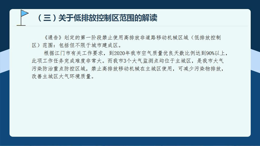 解读文本:《快猫 关于划定第一阶段禁止使用高排放非道路 移动机械区域的通告》(送审稿)的解读说明