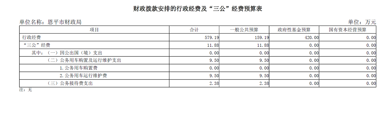 2025年本部门财政拨款安排“三公”经费11.88万元,比上年增加0万元,增长0%,主要原因是与上年持平,无增减变化。其中:因公出国(境)费0万元,比上年增加0万元,增长0%,主要原因是与上年持平,无增减变化;公务用车购置及运行维护费9.5万元(公务用车购置费0万元,比上年增加0万元;公务用车运行维护费9.5万元,比上年增加0万元。)比上年增加0万元,增长0%,主要原因是与上年持平,无增减变化;公务接待费2.38万元,比上年增加0万元,增长0%,主要原因是与上年持平,无增减变化。