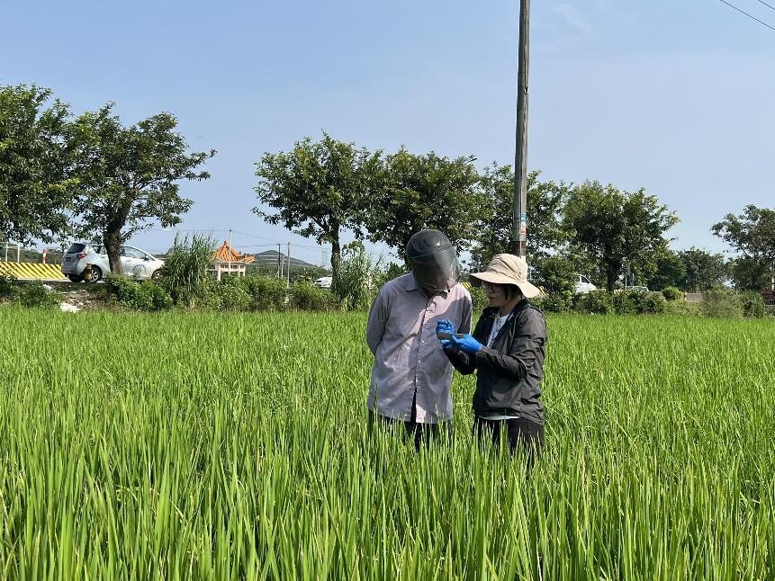 10月2日,在水稻“两迁”害虫防治窗口期,技术员开展以稻纵卷叶螟、稻飞虱为防治对象的田间药效试验。通过试验示范,使种植户提高对水稻主要病虫的认识,学会科学用药;通过精准用药,提高了农药利用率和病虫防效,达到减量控害目的。