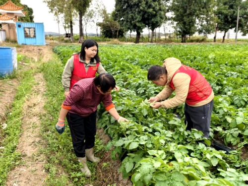 种植业管理股联同农技推广中心、植物保护站和各镇(街)工作人员深入沙湖、恩城等田间地头,了解冬种紫云英长势,指导强冷空气过程应对工作,特别是马铃薯、蔬菜、香蕉、南瓜苗等露天作物的御寒措施落实情况,并提醒农户做好冬种作物早、晚疫病等主要病害预防工作。