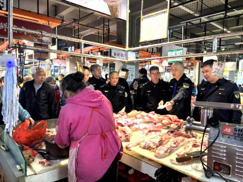 执法大队工作人员到锦江市场、南园市场、美华西市场和东安市场等地开展春节前肉制品专项检查,主要检查索证索票落实情况、肉制品检验检疫合格证明等。检查过程中,要求经营主体严格落实食品安全主体责任,严格把控进货源头,确保我市春节期间肉及肉制品安全。