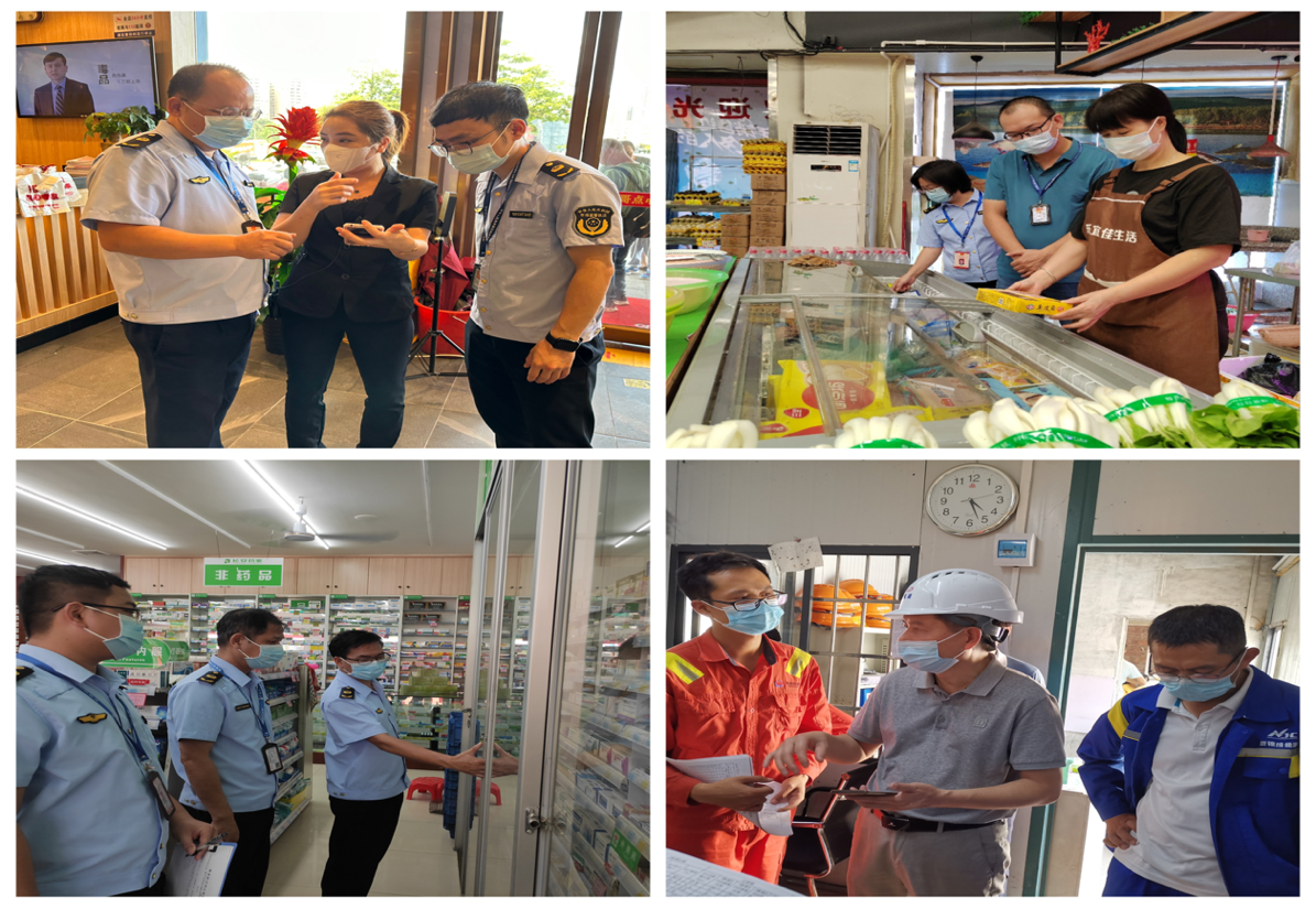 四是坚守疫情防控“防线”。当前新冠疫情反复,节日期间客流量大,人员密集,为此,严格抓好防疫产品、药械、疫苗等质量安全和价格市场秩序监管,落细落实农贸市场、进口冷链单位、药店等重点场所疫情管控要求,督促落实做好戴口罩、扫码、测温、环境场所清洁消毒、从业人员健康管理等疫情防控措施,坚决守住“外防输入”防线。假期累计检查药店、农贸市场、冷链食品经营单位257家次,对检查发现的部分农贸市场经营户及顾客未自觉正确佩戴口罩等问题进行整改,并加强问题整改“回头看”。