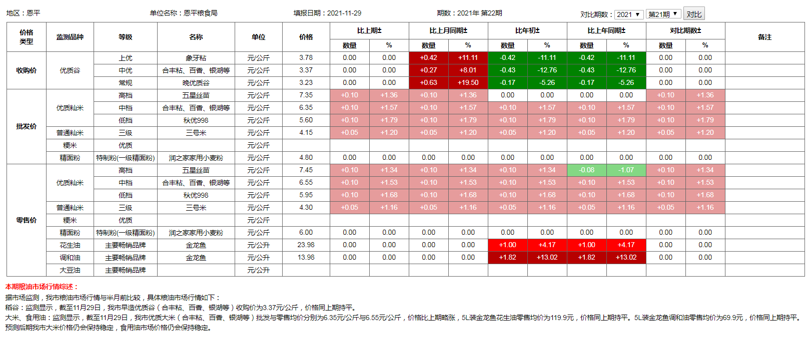 粮油价格监测(2021年11月29日)
