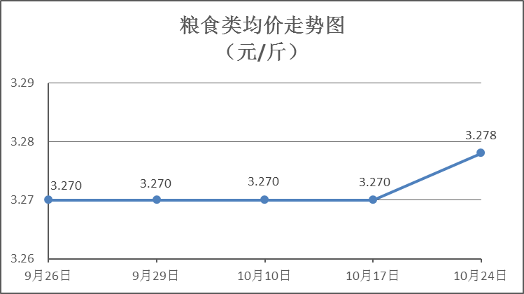 粮食类商品价格稳中有涨。本周所监测的6种粮食商品价格波动情况为2涨4平,综合零售均价为3.278元/斤,环比(与上周比,下同)上涨0.25%。其中:晚籼米、丝苗米、标准粉零售均价分别为每斤3.28元、3.51元、3.08元,环比分别持平、上涨0.86%、持平。