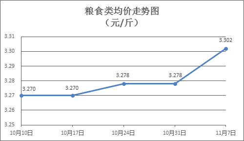 粮食类商品价格略有上涨。本周所监测的6种粮食商品价格价格波动情况为5涨1平,综合零售均价为3.302元/斤。其中:晚籼米、丝苗米、标准粉零售均价分别为每斤3.34元、3.52元、3.12元,环比分别上涨1.83%、上涨0.28%、上涨1.30%。