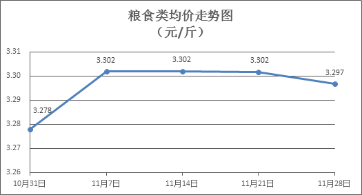 粮食类商品价格稳中微降。本周所监测的6种粮食商品价格波动情况为2跌4平,综合零售均价为3.297元/斤。其中:晚籼米、丝苗米、标准粉零售均价分别为每斤3.32元、3.52元、3.11元,环比分别下降0.60%、持平、下降0.32%。