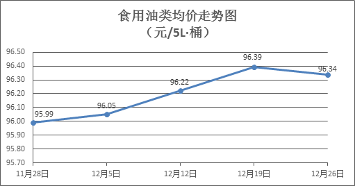 食用油类商品价格微幅波动。本周所监测的9种食用油(5L装)商品价格波动情况为3涨1跌5平,综合零售均价为96.34元/桶,环比下降0.06%。其中:鲁花花生油、玉米油零售均价分别为每桶158.88元、75.04元,环比分别下降1.06%、上涨0.11%。