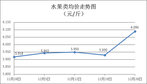 水果类商品价格小幅上涨。本周所监测的6种水果商品价格波动情况为5涨1平,综合零售均价为6.090元/斤,环比上涨2.70%。其中橙子、苹果、葡萄零售均价分别为每斤6.47元、7.00元、12.06元,环比分别上涨4.35%、上涨1.16%、上涨1.17%。