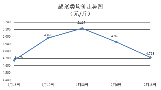 蔬菜类商品价格总体下降。本周所监测的32 种蔬菜商品价格波动情况为2涨29跌1平,综合零售均价为4.718元/斤,环比下降4.26%。其中:涨幅居前的品种包括蒜头、白萝卜,零售均价分别为每斤7.36元、2.14元,环比分别上涨0.68%、0.47%;跌幅居前的品种包括西洋菜、生菜、本地菜心,零售均价分别为每斤4.19元、3.58元、4.76元,环比分别下降12.53%、9.14%、8.29%。