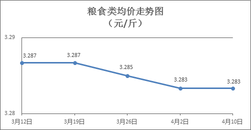 粮食类商品价格保持稳定。本周所监测的6种粮食商品价格均持平,综合零售均价为3.283元/斤。其中:珍珠米、油粘米、标准粉零售均价分别为每斤3.09元、3.42元、3.14元,环比均持平。