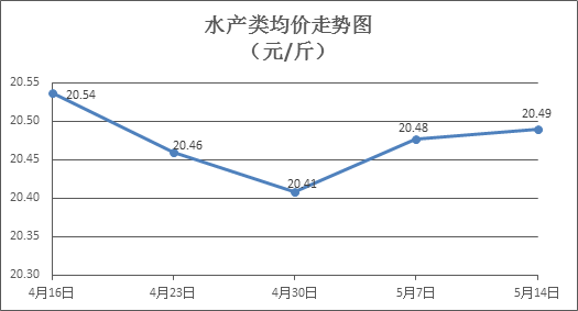 水产类商品价格窄幅盘整。上周所监测的10种水产商品价格波动情况为7涨3跌,综合均价为20.49元/斤,环比上涨0.06%。其中:草鱼、鲫鱼、鳙鱼、罗非鱼、海虾零售均价分别为每斤10.96元、13.69元、10.02元、8.36元、50.67元,环比分别上涨0.83%、上涨0.15%、上涨0.20%、上涨0.12%、下降0.65%。