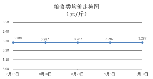 粮食类商品价格基本平稳。上周所监测的6种粮食类商品价格环比均持平,综合零售均价为3.287元/斤。其中:晚籼米、油粘米、标准粉零售均价分别为每斤3.24元、3.42元、3.15元,环比均持平。