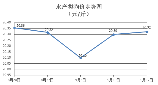 水产类商品价格升降互现。上周所监测的10种水产商品价格波动情况为4涨6跌,综合均价为20.32元/斤,环比上涨0.11%。其中:草鱼、鲢鱼、鳙鱼、罗非鱼、基围虾零售均价分别为每斤11.08元、9.65元、10.20元、8.39元、35.66元,环比分别上涨0.27%、下降2.72%、下降0.10%、上涨0.12%、上涨0.37%。