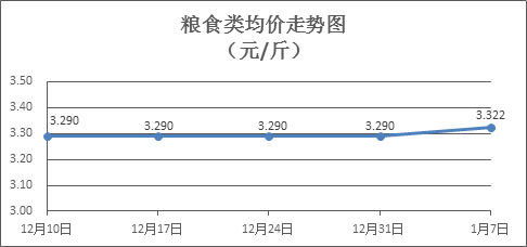 粮食类商品价格稳中略涨。上周所监测的6种粮食类商品价格波动情况为4涨2平,综合零售均价为3.322元/斤,环比上涨0.96%。其中:晚籼米、油粘米、标准粉零售均价分别为每斤3.28元、3.47元、3.18元,环比分别上涨1.23%、上涨0.87%、上涨0.95%。