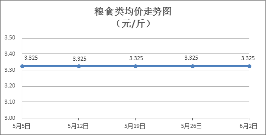 粮食类商品价格基本平稳。所监测的6种粮食类商品价格均持平,零售均价为每斤3.325元。其中:晚籼米、丝苗米、富强粉零售均价分别为每斤3.26元、3.56元、3.36元,环比均持平。