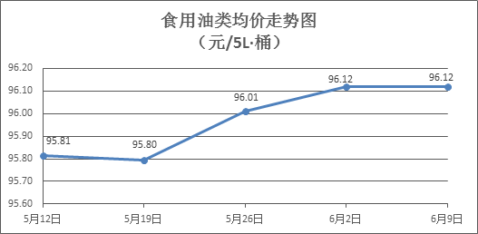 食用油类商品价格微幅盘整。所监测的9种食用油(5L装)商品价格波动情况为4涨3跌2平,综合零售均价为每桶96.12元,环比持平。其中:鲁花花生油、玉米油零售均价分别为每桶154.39元、76.95元,环比分别下降0.01%、上涨0.13%。